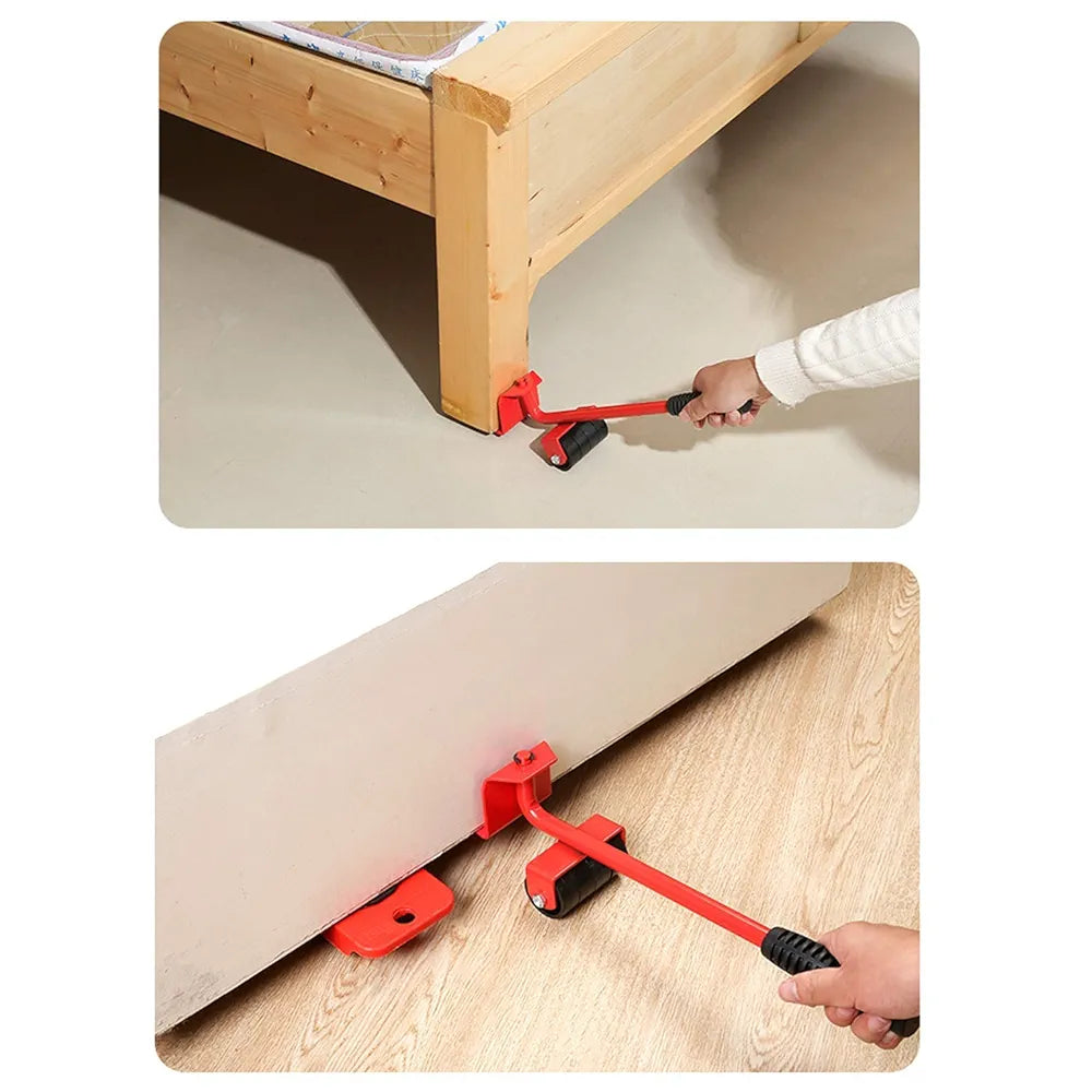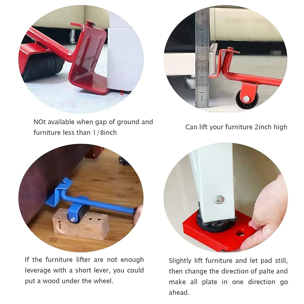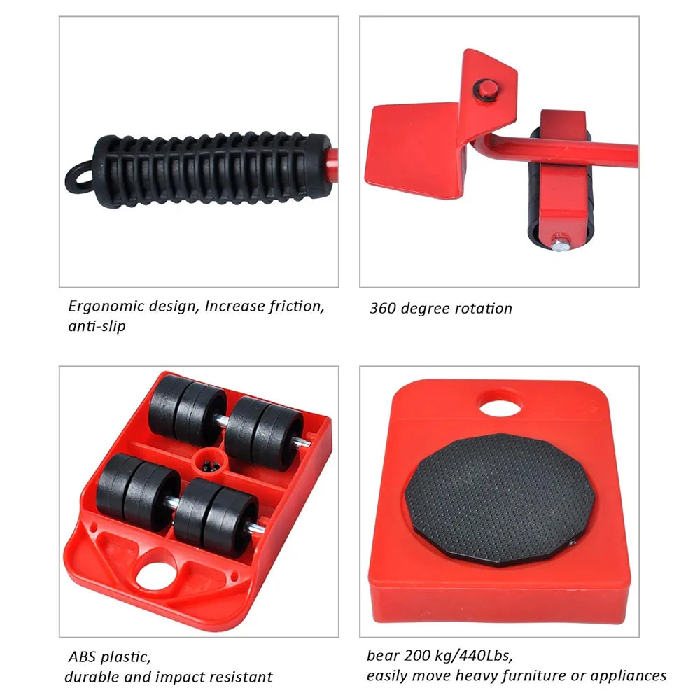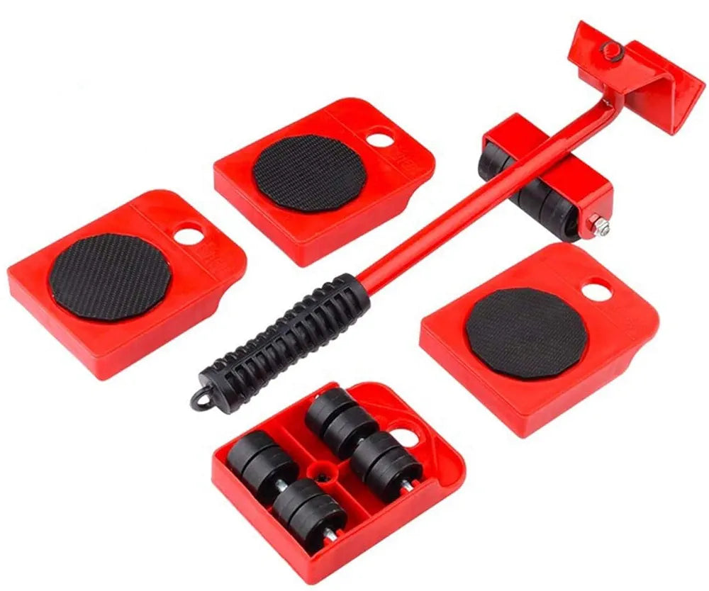 مجموعة رافعة لنقل الاثاث مع 4 قطع بعجلات انزلاقية تتحمل حتى 150 كجم للكنبة والثلاجة والغسالة والسرير 5 قطع - احمر